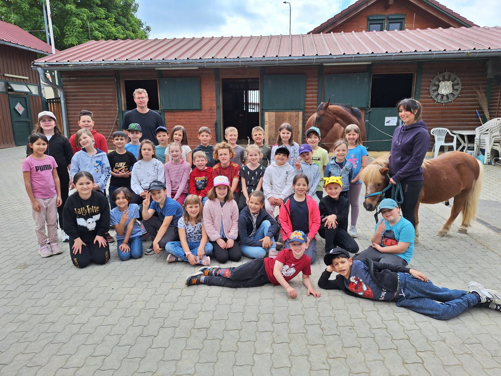 Die Schülerinnen und Schüler starteten um 8 Uhr morgens einen Fußmarsch von der Volksschule Leopoldsdorf in die Nachbarortschaft Breitstetten. Nach einem rund 5km langen Spaziergang durften wir den Pferdehof Melzer erkunden. Dort erfuhren sie viel Wissenswertes über Pferde und deren Haltung. Wer wollte, durfte die Tiere beobachten, streicheln und sogar striegeln. Ein aufgestellter Parcours hat es ermöglicht, dass die Schülerinnen und Schüler mit einem Steckenpferd diesen ausprobieren konnten. Nach einer gemeinsamen Jause ging es gut gelaunt zu Fuß nach Hause.