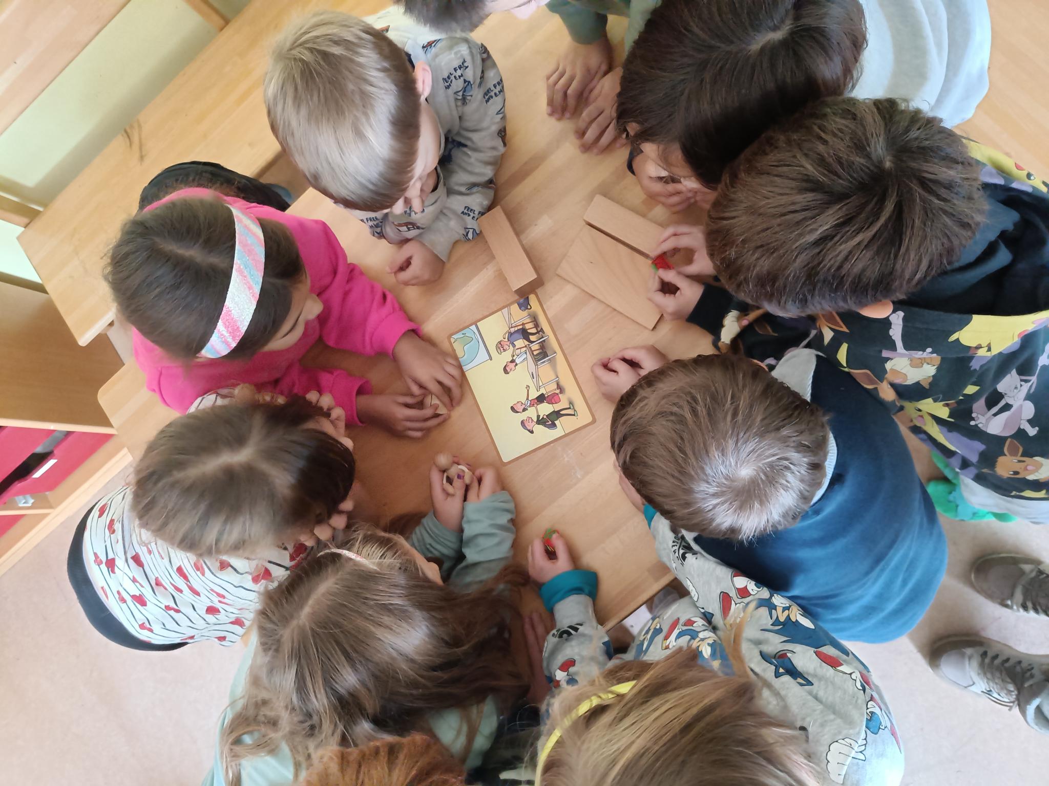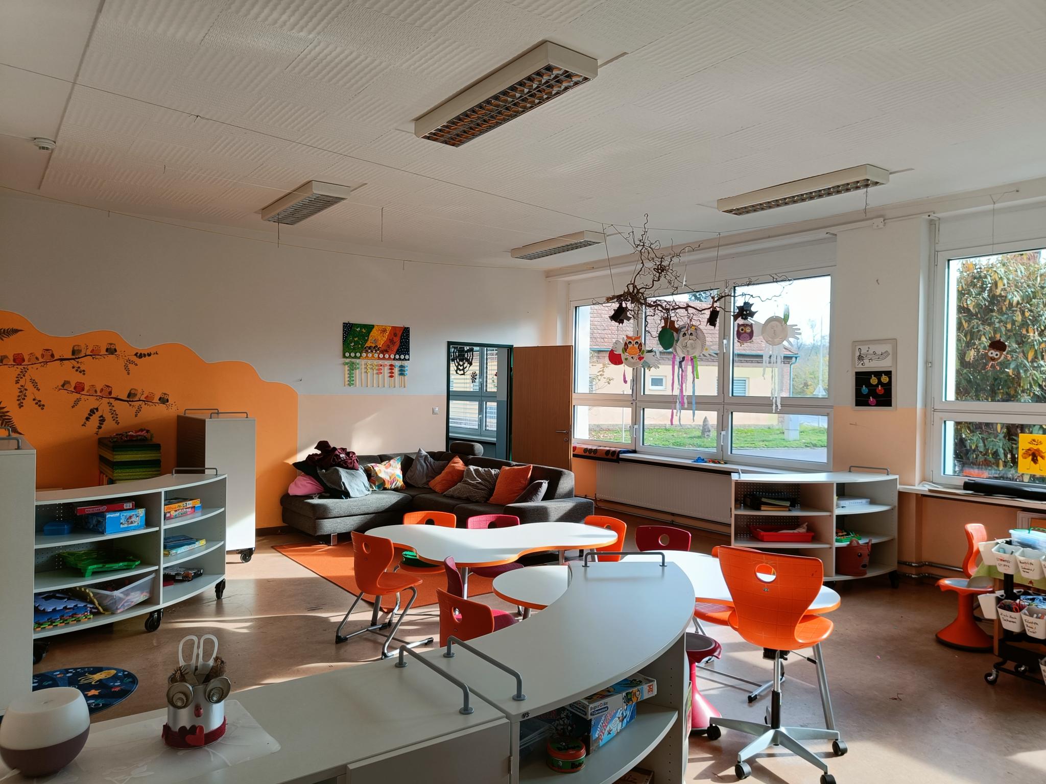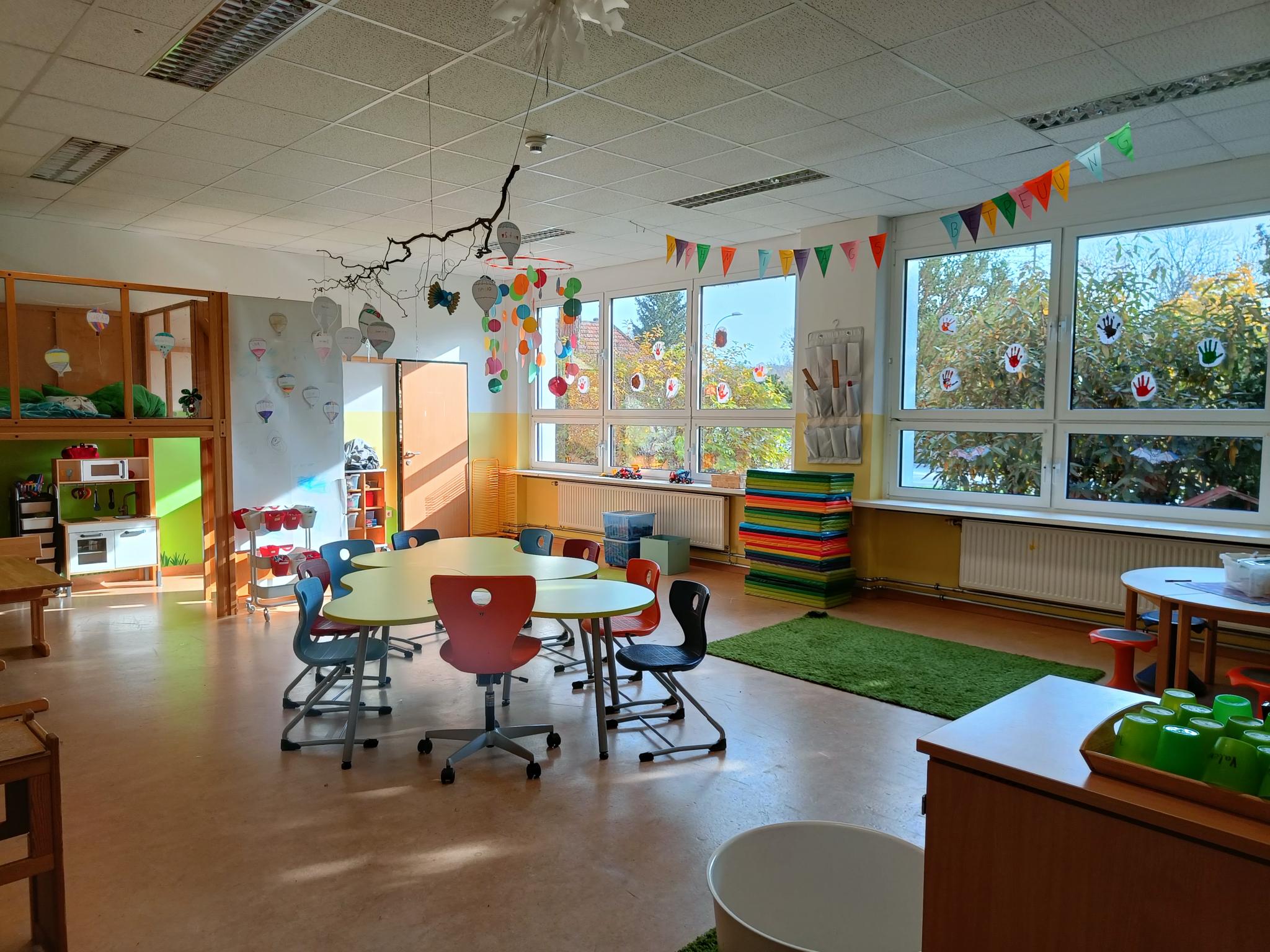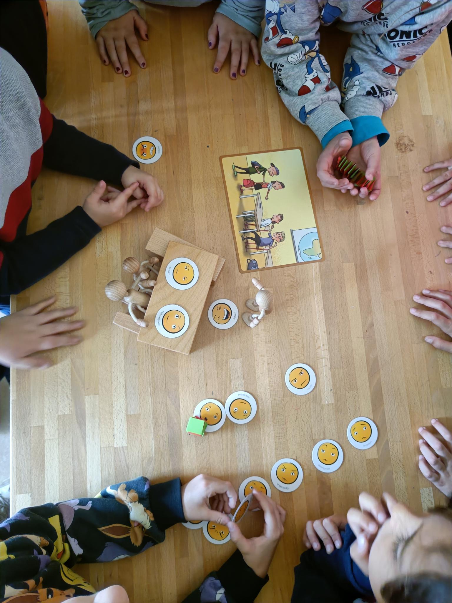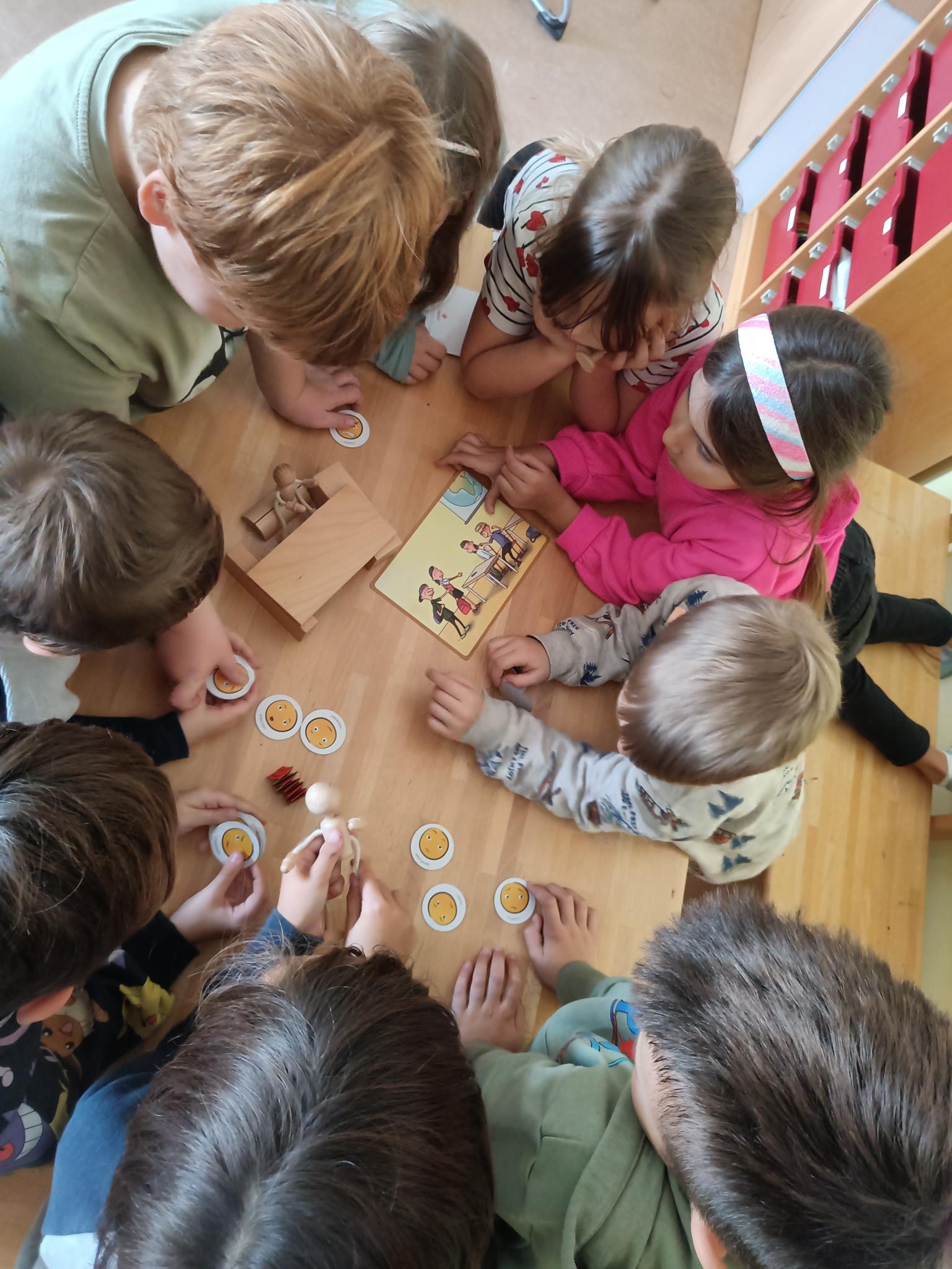 - Im Gruppenraum finden anschließend die Besprechungen mit den Kindern statt. Dabei geht es um besondere Bekanntgaben, eventuelle Geburtstagsfeiern, Gruppenregeln und Mentalisieren von Uneinigkeiten innerhalb der Gruppe.