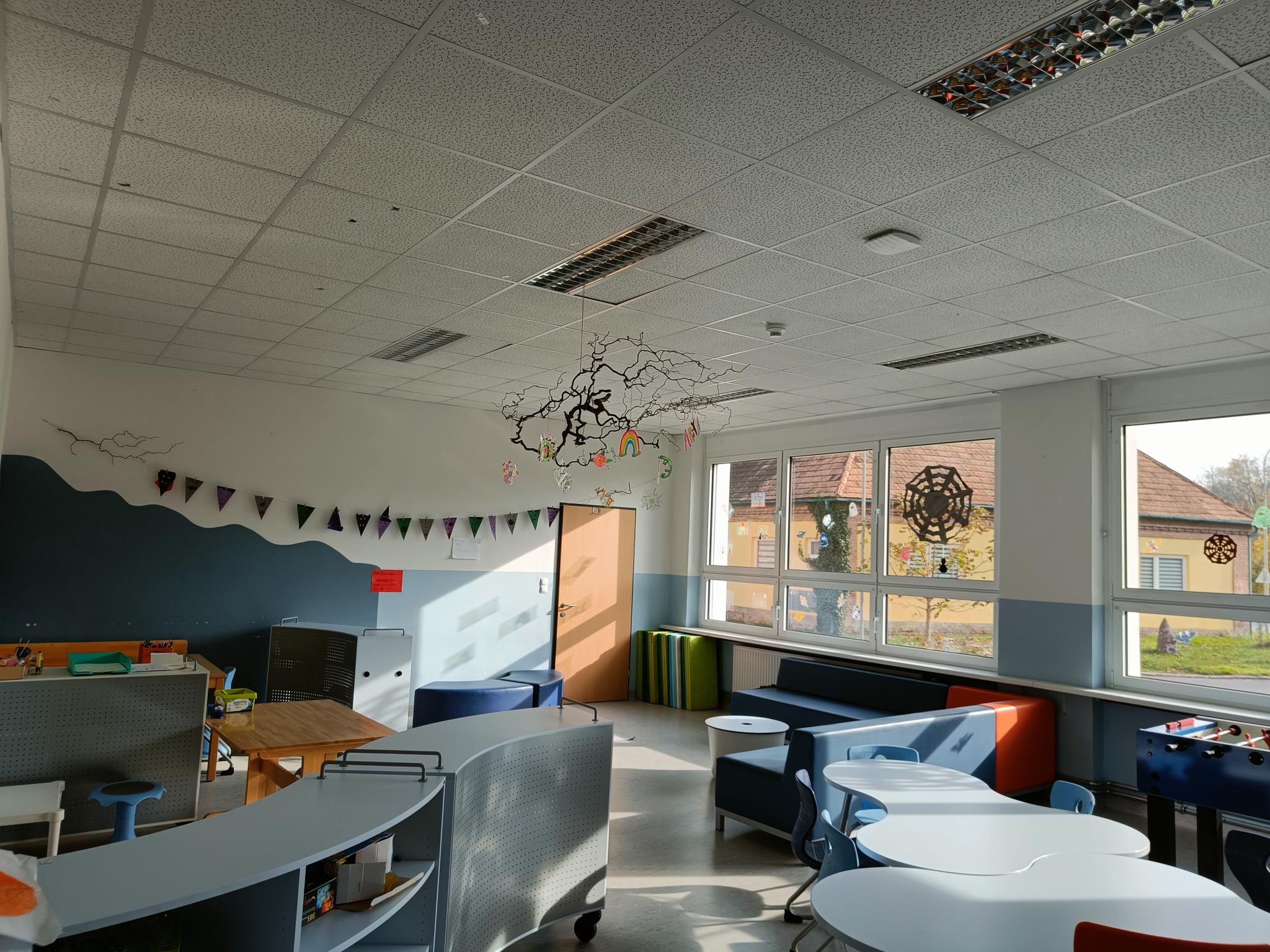 - Um 12 Uhr gehen die ersten und zweiten Klassen in den Speisesaal essen und um 12:30 Uhr starten sie in die verbindliche Lernstunde mit den Lehrpersonen.